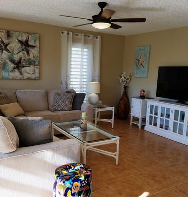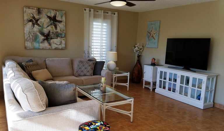 Relax in the spacious living area with direct access to the gallery. There's a large smart TV so you can connect to your favorite streaming platform or watch basic local programming.