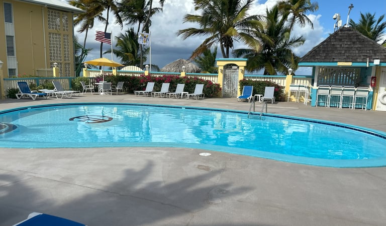 Welcome to your private vacation condo located on the beaches of the beautiful island of St. Croix in the United States Virgin Islands. At Tropical Turtle STX, you can relax and enjoy the beachfront pool with direct beach access, lush gardens, and the security of a gated property with free parking and walking access to restaurants.