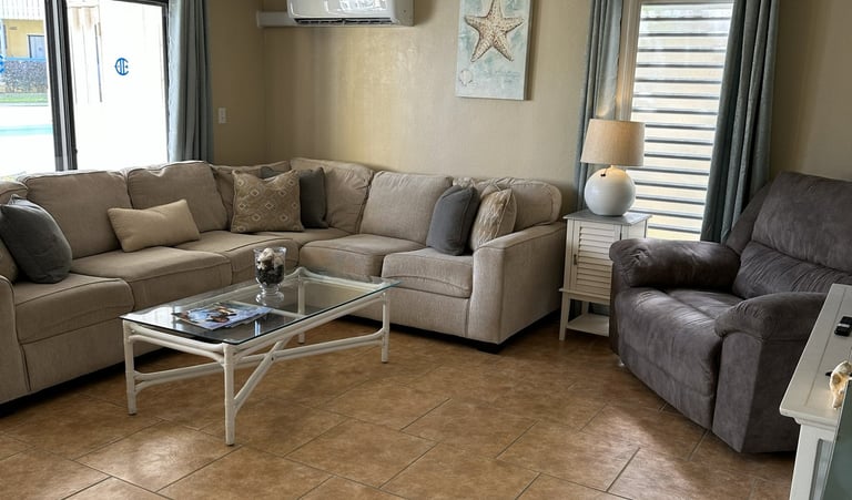 Relax in the spacious living area with direct access to the gallery. There's a large smart TV so you can connect to your favorite streaming platform or watch basic local programming.